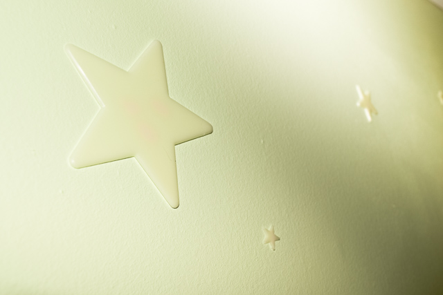 The walls are covered with 150 glow-in-the-dark stars that shine brightly at night. The next 300 will be added later when he grows up.